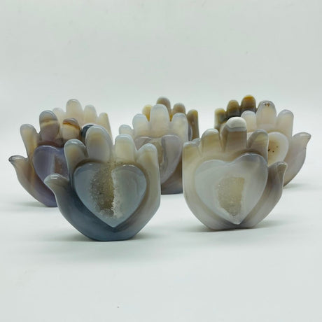 8 Pieces Geode Druzy Agate Stand Beautiful Hand Heart Carving