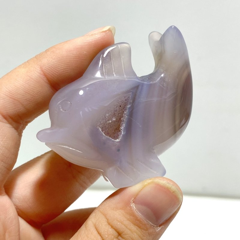 We sell our geode druzy agate dolphin carving in lots that are 15pcs, you will get the same of stones as in the photo and video.