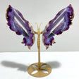 Unique Purple Sakura Flower Agate Butterfly Wing Carving With Stand