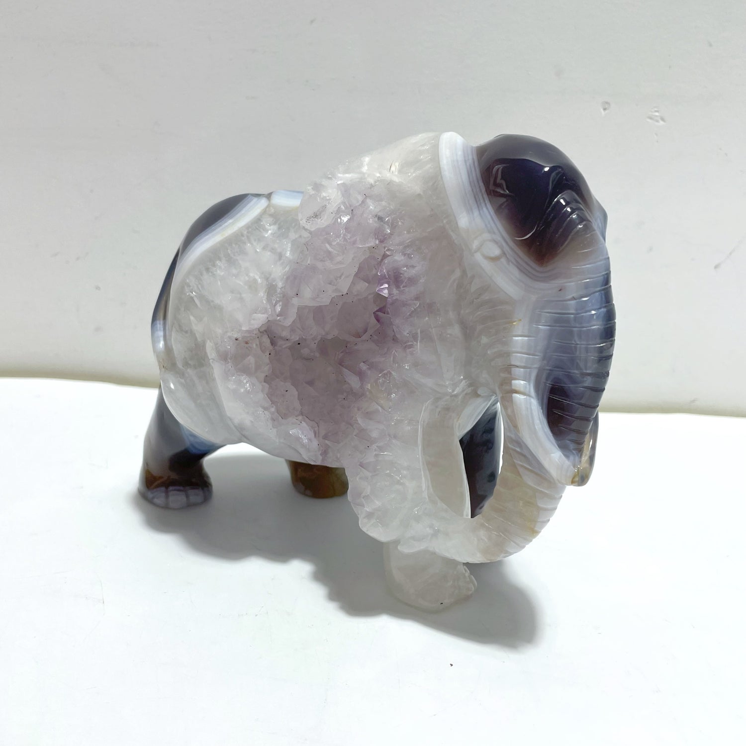 Beautiful Geode Agate Druzy Elephant Animal Carving #A02