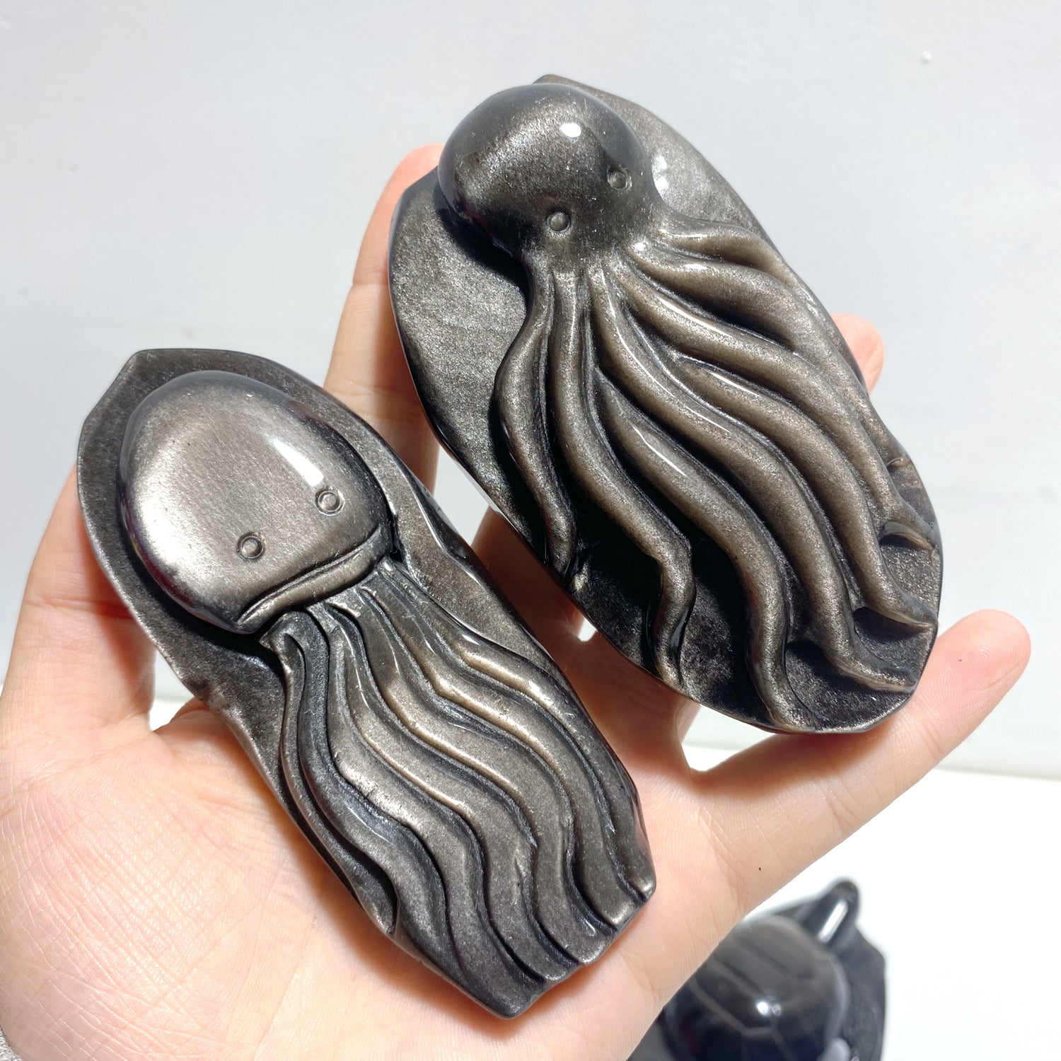 8 Pieces Silver Sheen Obsidian Animals Carving