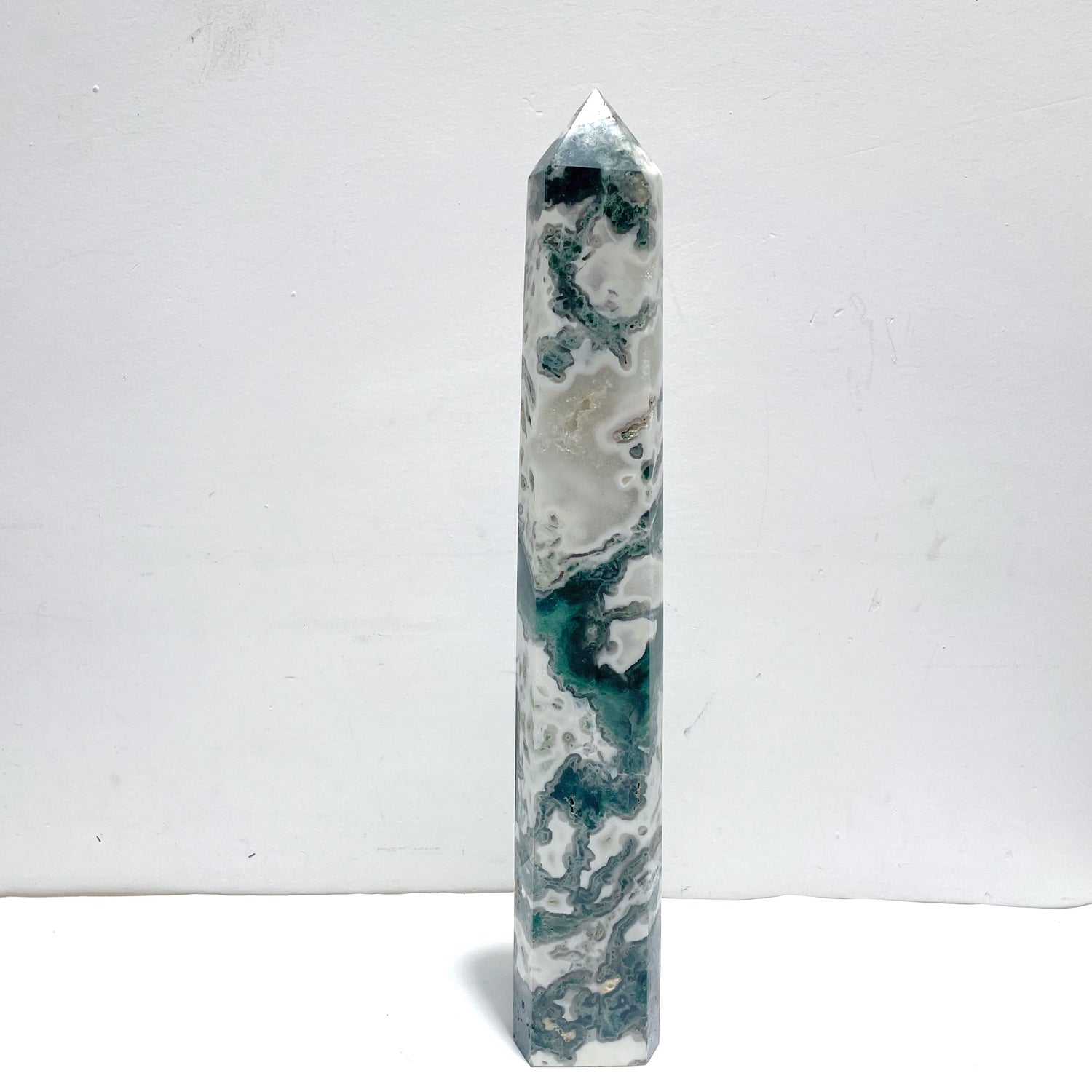 4 Pieces Tall Geode White Moss Agate Points